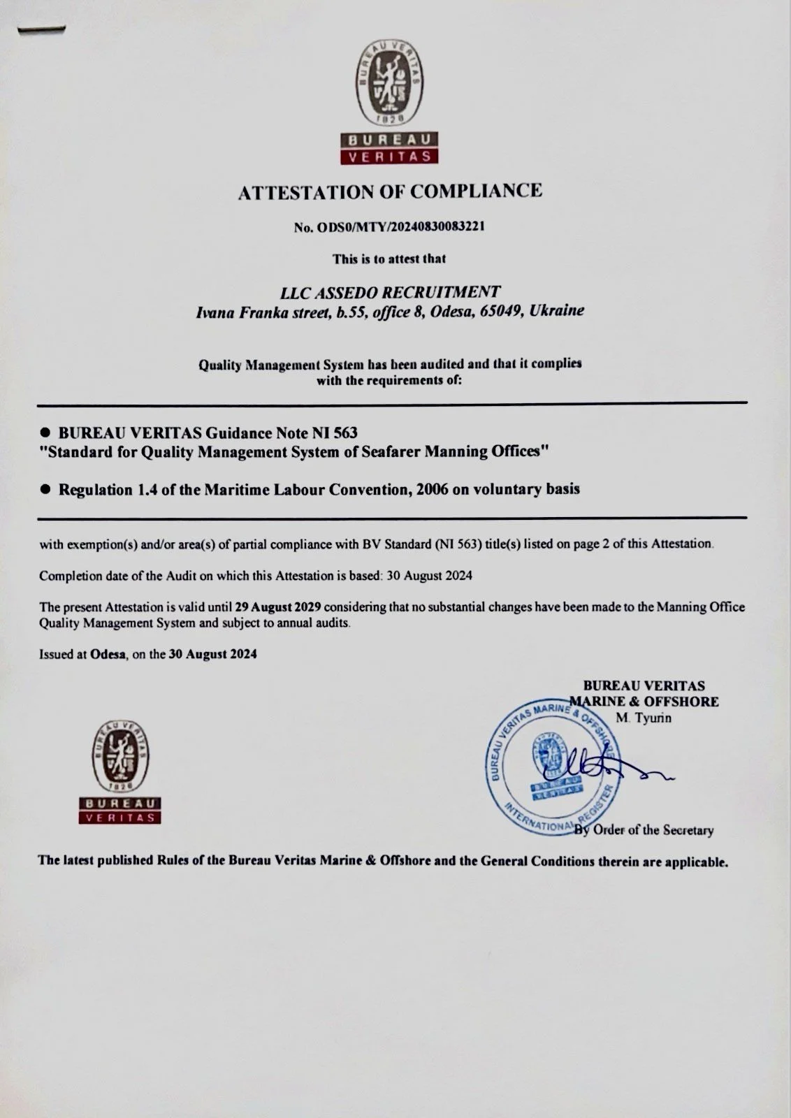 We operate under the Maritime Labour Convention (MLC 2006), ensuring that our recruitment practices meet the highest international standards. Working under this license reflects our professionalism, transparency, and commitment to both clients and crew.